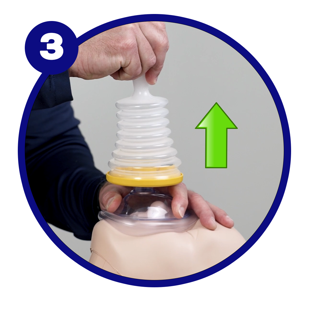 SalvaFiato crea una pressione negativa che aspira l'oggetto bloccato nelle vie aeree. Posizionando la maschera sul viso della persona in difficoltà e attivando il dispositivo, l'ostruzione viene rimossa rapidamente, ripristinando la respirazione normale.