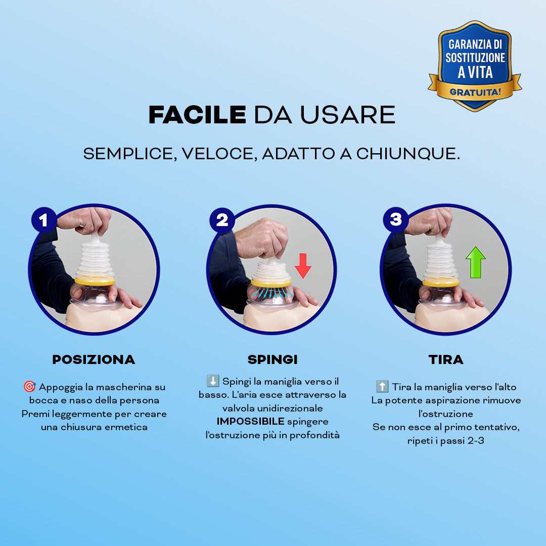 🎯 Efficacia anche su oggetti "appiccicosi" che la Heimlich non riesce a rimuovere